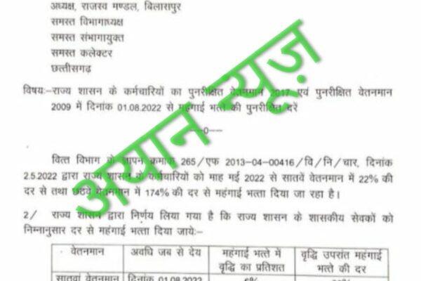 BIG BREAKING:रायपुर, अधिकारी-कर्मचारियों के लिए खुशखबरी,छत्तीसगढ़ में 6% बढ़ा महंगाई भत्ता, आदेश जारी देखिये आदेश की कापी रायपुर,छत्तीसगढ़ में अधिकारी-कर्मचारियों के लिए बड़ी खुशखबरी सामने …