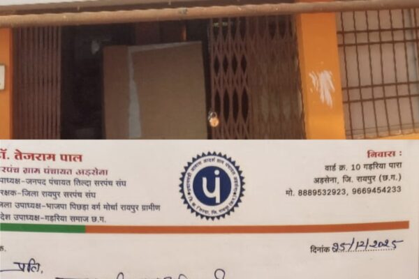 न्यूज रिपोर्टर __ मोहम्मद उस्मान सैफी स्थान __ ग्राम पंचायत अड्सेना / धरसीवा विधानसभा क्षेत्र स्लग __ सुशासन दिवस का बहिष्कार किया गया एंकर __ …