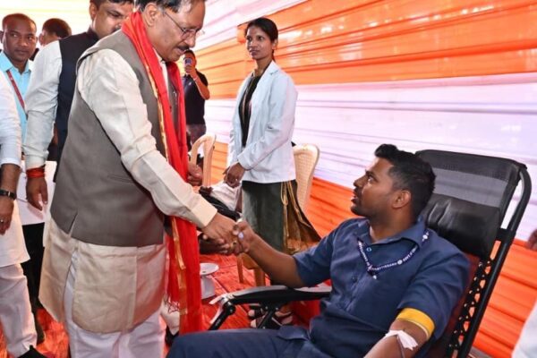 रायपुर: मुख्यमंत्री श्री विष्णु देव साय ने अपने 62वें जन्मदिन के अवसर पर राजधानी रायपुर स्थित मुख्यमंत्री निवास परिसर में आयोजित रक्तदान शिविर का शुभारंभ …