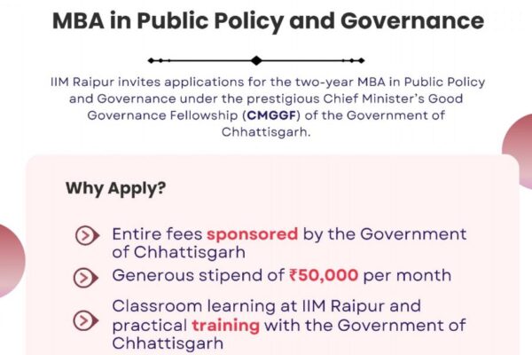 रायपुर: मुख्यमंत्री श्री विष्णु देव साय के नेतृत्व में छत्तीसगढ़ के युवाओं को सुशासन और पब्लिक पॉलिसी के क्षेत्र में आगे बढ़ाने के उद्देश्य से …