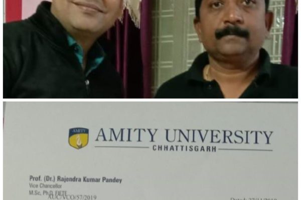 रायपुर :एशिया की सबसे बड़ी यूनिवर्सिटी एमिटी ने छत्तीसगढ़ के वर्ल्ड रिकॉर्ड धारी अभिनेता अखिलेश पांडे को सम्मान स्वरूप अपने यूनिवर्सिटी का एसोसिएट प्रोफेसर नियुक्त …