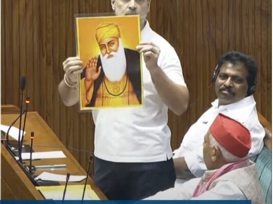 *गुरुनानक देव जी की फोटो का राहुल गांधी द्वारा संसद में प्रदर्शन : सिख समाज की आपत्ति* लोकसभा में विपक्ष के नेता राहुल गांधी द्वारा …