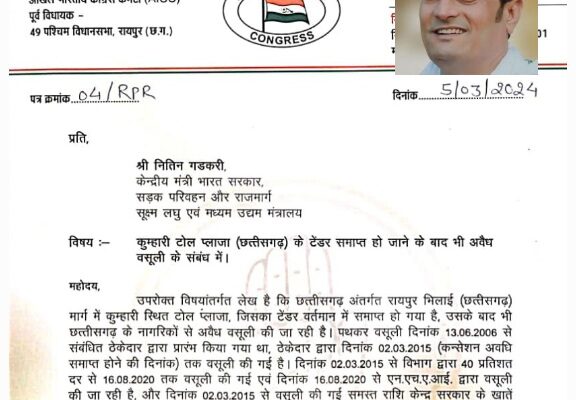 अखिल भारतीय कांग्रेस कमेटी के सचिव एवं पूर्व विधायक विकास उपाध्याय ने आज केंद्रीय मंत्री श्री नितिन गडकरी जी को पत्र के माध्यम से कुम्हारी …