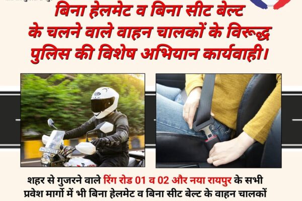 *बिना हेलमेट व बिना सीट बेल्ट के चलने वाले वाहन चालकों के विरूद्ध पुलिस की विशेष अभियान कार्यवाही**शहर से गुजरने वाले रिंग रोड 01 व …