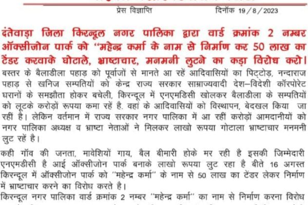 अयान न्यूज दंतेवाड़ा से असीम पाल कि रिपोर्टब्रेकिंग दंतेवाड़ा*. माओवादियों की पश्चिम बस्तर डिविजनल कमेटी के सचिव मोहन ने किया प्रेस विज्ञप्ति जारी । इसमें …