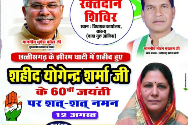 रायपुर,झीरम घाटी में हुए शहीद योगेंद्र शर्मा के 60 वीं जयंती पर रक्तदान शिविर का आयोजन, धरसीवां के सांकरा में, रायपुर,झीरम घाटी में हुए शहीद …