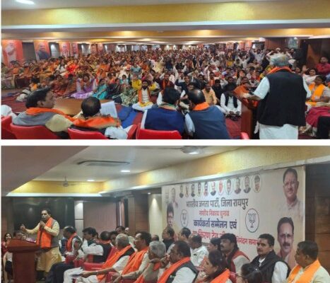रायपुर नगर निगम में जीत के लिए राजेश मूणत ने कार्यकर्ताओं को दिलाया संकल्प मिलकर लड़ेंगे और रायपुर नगर निगम में भाजपा का झंडा लहराएंगे …
