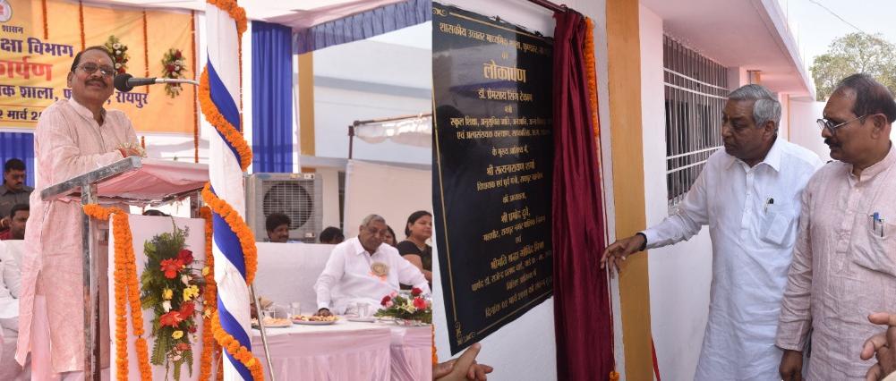 डॉ. प्रेमसाय सिंह ने लोकार्पण समारोह को संबोधित करते हुए कहा कि सरकार की सोच है कि विद्यालय में पढ़ने वाले बच्चों को गुणवत्तापूर्ण शिक्षा मिले। विद्यालयों में शिक्षक के अध्यापन का प्रस्तुतिकरण आकर्षक होना चाहिए जिसे विद्यार्थी आसानी से समझ सकंे। उन्होंने कहा कि विद्यालयों में पढ़ाई के साथ-साथ खेल और सांस्कृतिक गतिविधियों को भी समग्र रूप से जोड़ा जाना चाहिए। डॉ.प्रेमसाय सिंह ने कहा कि इन गतिविधियों में भी प्रतिभाओं की कमी नहीं है। स्कूल शिक्षा मंत्री ने बताया कि विद्यालय तक पहंुच मार्ग निर्माण के लिए लोकनिर्माण विभाग के बजट में राशि का प्रावधान कर दिया गया है। उन्होंने कहा कि आने वाले समय में बॉन्ड्रीवाल का निर्माण होगा, जिससे विद्यालय परिसर के पास स्थित नालों और तालाब का पानी वर्षा ऋतु में नहीं भरेगा। उन्होेंने कहा कि विद्यालय की जो भी अन्य आवश्यकता होगी उसे पूरा करने का प्रयास होगा, इसके लिए बजट में प्रस्ताव को शामिल किया जाएगा। विद्यालय से संबंधित समस्याओं को धीर-धीरे दूर किया जाएगा।