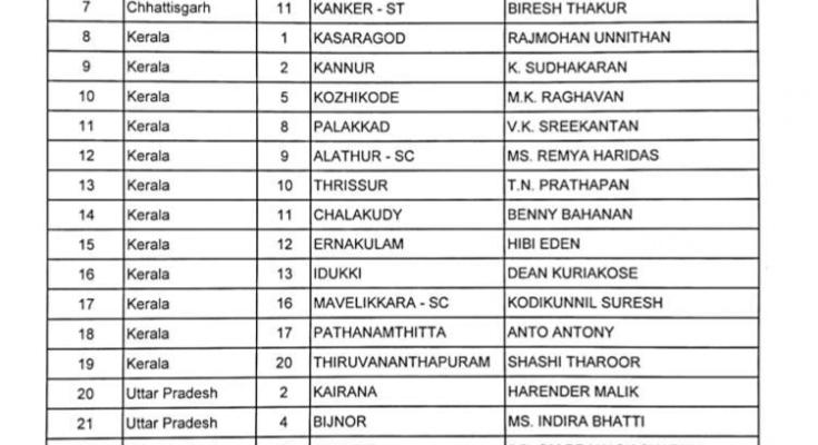 कांग्रेस ने जारी की उम्मीदवारों की सूची, छत्तीसगढ़ से 5 नामों की घोषणा