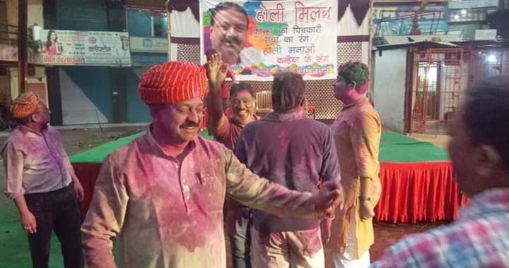रिमझिम बारिश के बीच मशहूर कलाकार संतोष सारथी और उनकी टीम के होली गीतों पर विधायक विकास विकास उपाध्याय के साथ ही कार्यकर्ता भी जमकर थिरकते रहे पार्षद गोवर्धन शर्मा ने रंग बरसे गाकर वातावरण को होली में किया । बारिश में गरम पकौड़े जलेबी और ठंडाई में होली की उमंग को दोगुना किया होली मिलन में पहुंचे सभी सम्मानित जनों के प्रति कन्हैया अग्रवाल ने हृदय से आभार व्यक्त करते हुए कहा कि यह स्नेह और आशीर्वाद लगातार बना रहे ।