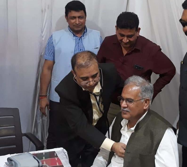 afroj khwaja:-पाटन में रामकृष्ण केयर अस्पताल द्वारा आयोजित ह्रदय रोग शिविर में मुख्यमंत्री भूपेश बघेल ने स्वयं का भी ब्लड प्रेशर का जाँच करवाया