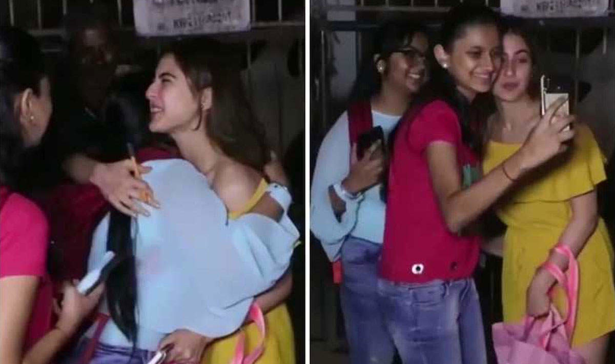 हाल ही में सारा अली खान अपनी मां अमृता सिंह के साथ कहीं बाहर गई थीं। इसी दौरान उनके फैंस ने अपने पसंदीदा स्टार को घेर लिया और उनके साथ सेल्फी लेने लगे। सारा अली खान ने भी बड़ी आसानी से सभी को सेल्फी लेने दी। यहां तक ऐक्ट्रेस ने अपने फैंस को गले भी लगाया। सारा अली खान ऑफ शोल्डर येलो ड्रेस और अपनी नैचरल हेयर स्टाइल में काफी खूबसूरत लग रही थीं।