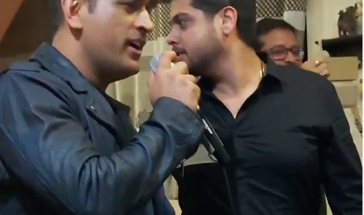 धोनी का एक विडियो वायरल हो रहा है जिसमें उन्हें एक पुराना हिंदी गीत गाते हुए देखा जा रहा है। यह विडियो एक इंस्टाग्राम यूजर ने पोस्ट किया है। इसमें धोनी पुराना हिंदी गीत, ‘जब कोई बात बिगड़ जाए। जब कोई मुश्किल पड़ जाए।’ गा रहे हैं।