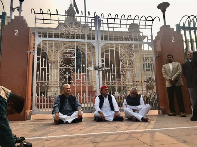 एसपी अध्यक्ष अखिलेश यादव के साथ बाकी नेता भी विधानसभा के गेट नंबर 2 के बाहर धरना दे रहे हैं। बता दें कि उन्नाव में जिंदा जलाई गई रेप पीड़िता की शुक्रवार रात दिल्ली के सफदरगंज अस्पताल में कार्डिएक अरेस्ट से मौत हो गई। उधर, बीएसपी प्रमुख ने भी पीड़िता की मौत पर दुख जाहिर करते हुए तुरंत न्याय की मांग की है।