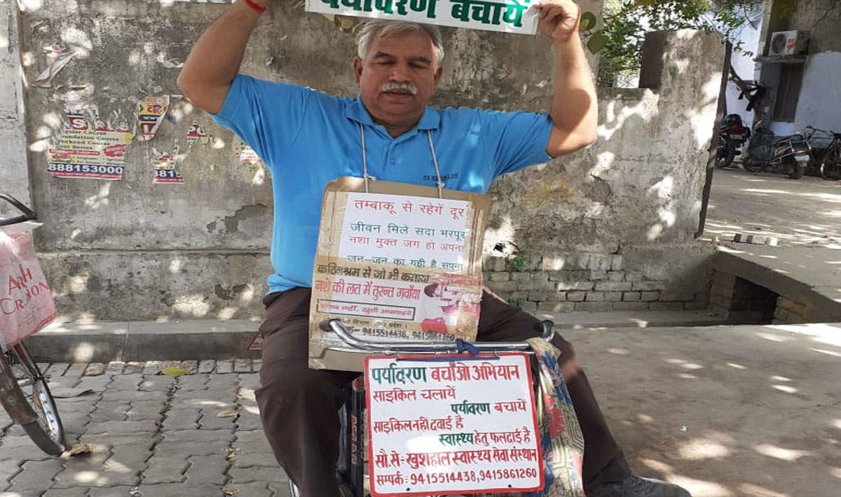 कृष्णानंद राय उत्तर प्रदेश प्रदूषण नियंत्रण बोर्ड में सीनियर अकाउंटेंट हैं। उनकी नियुक्ति लखनऊ में है। वह दिसंबर 2020 में अपने पद से रिटायर हो जाएंगे। कृष्णानंद राय कहते हैं, ‘मेरे तीन मुख्य उद्देश्य हैं, नशा उन्मूलन, पर्यावरण, सड़क सुरक्षा। मैं रोजाना तकरीबन 30 से 40 किलोमीटर साइकल चलाता हूं। अकेले जब भी निकलता हूं तो साथ में साइकल ही होती है। मेरी कोशिश है कि हम साइकल से चलें ताकि पर्यावरण प्रदूषित होने से कुछ तो बचाया जा सके। इसके साथ ही हमारा स्वास्थ्य भी इससे बेहतर रहेगा।’