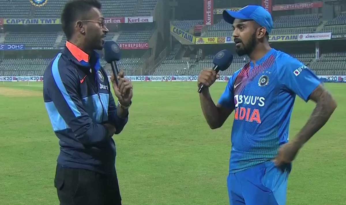 मैच के बाद राहुल और हार्दिक मैदान पर एक-दूसरे से बातचीत कर रहे हैं। राहुल हरफनमौला खिलाड़ी हार्दिक के सवालों का जवाब दे रहे हैं। बीसीसीआई ने ट्विटर पर दोनों के बीच हुए बातचीत का विडियो पोस्ट किया है।
