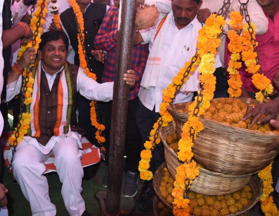 जगह-जगह लड्डूओं, केला और सेब फल से तौलकर किया गया अभिनंदन