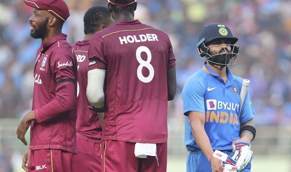 भारतीय कप्तान वेस्ट इंडीज के खिलाफ सीरीज के दूसरे एकदिवसीय अंतरराष्ट्रीय मुकाबले में खाता खोले बिना आउट हो गए। अपनी पहली ही गेंद पर कोहली कायरन पोलार्ड की स्लो बाउंसर पर चूके और रोस्टन चेस ने मिडविकेट पर उनका आसान सा कैच पकड़ लिया। कोहली के वनडे करियर में 13वीं बार जीरो पर आउट हुए। इतना ही सिर्फ तीसरा ऐसा मौका था जब कोहली अपनी पारी की पहली ही गेंद पर आउट हो गए हों। हालांकि भारत ने और केएल राहुल की सेंचुरी की मदद से अपने 50 ओवरों में 5 विकेट पर 387 रनों का विशाल स्कोर बनाया।