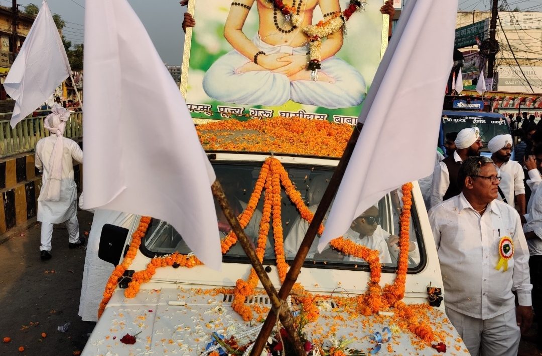 सात सफेद ध्वज वाहको ने की शोभायात्रा की अगुवाई शोभायात्रा में सात सफेद ध्वज वाहको ने अगुवाई की। उनके पीछे समाज के लोग चल रहे थे। इस दौरान पंथी पार्टी भी अपने नृत्य का प्रदर्शन किया।