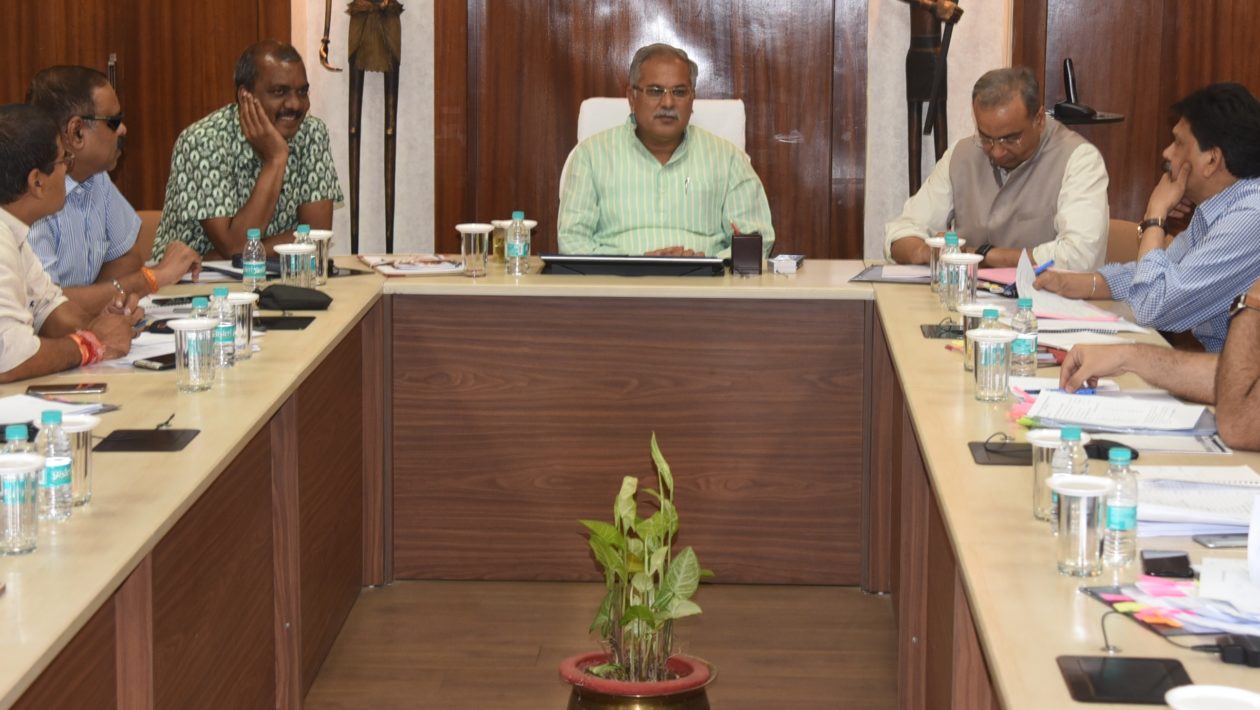 रायपुर-मुख्यमंत्री भूपेश बघेल ने आज अपने निवास कार्यालय में विभागीय समीक्षा बैठक में आगामी खरीफ फसल के लिए खाद,बीज और उर्वरकों की उपलब्धता, शहरी एवं ग्रामीण क्षेत्रों में पेयजल आपूर्ति की समस्या के साथ-साथ नरवा, गरूवा, घुरवा, बारी तथा अन्य महत्वपूर्ण मुद्दों पर वरिष्ठ अधिकारियों की बैठक ली। बैठक में मुख्य सचिव सुनील कुजूर, पुलिस महानिदेशक डी.एम. अवस्थी, अपर मुख्य सचिवगण सर्वश्री के.डी.पी.राव, आर.पी. मंडल, अमिताभ जैन, मुख्यमंत्री के प्रमुख सचिव गौरव द्विवेदी सहित विभिन्न विभागों के वरिष्ठ अधिकारीगण उपस्थित थे।