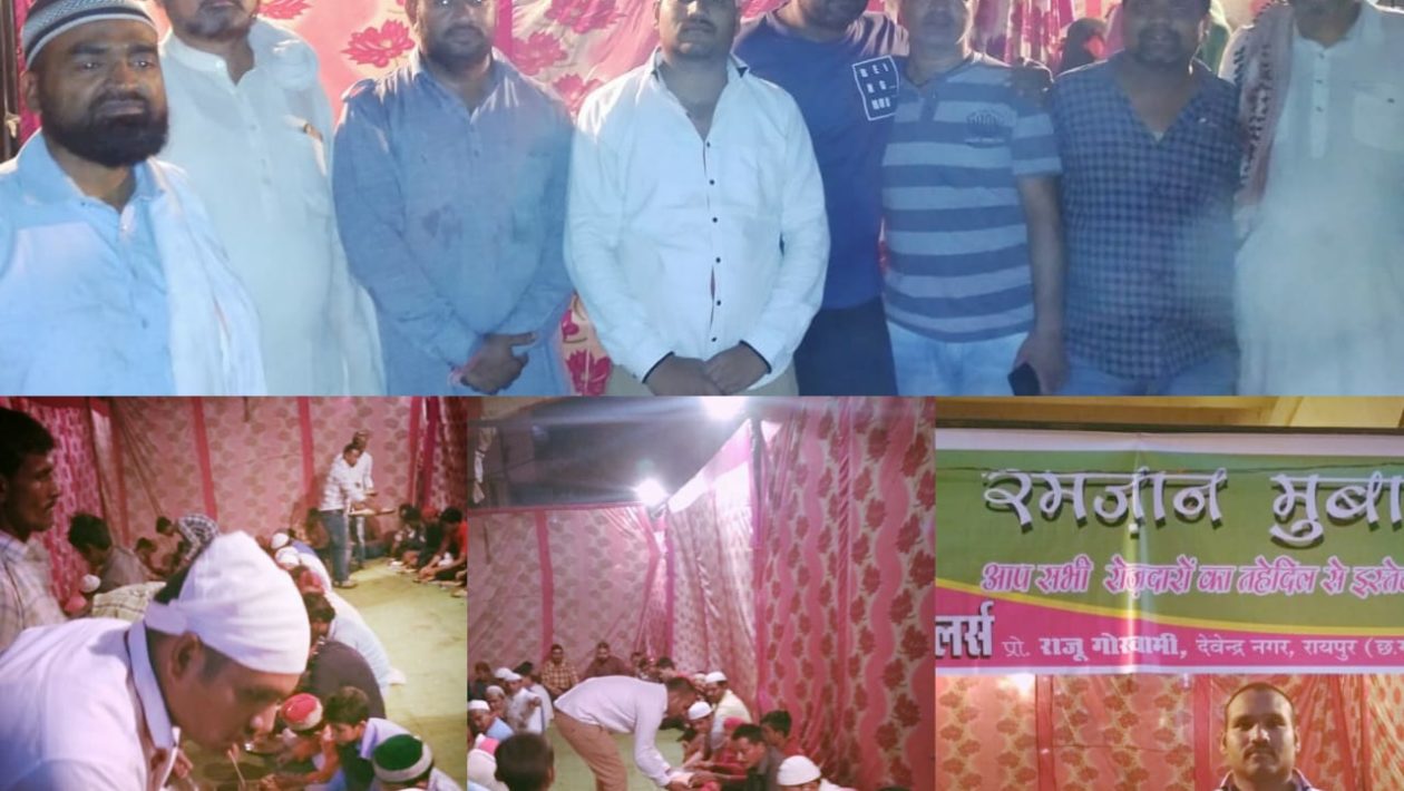 रमज़ान मुबारक के पाक महीने में छोटे भाई राजू गोस्वामी चिराग ज्वेलर्स द्वारा आज शाम देवेन्द्र नगर में रोज़दारो के लिए रोज़ा अफ्तार का इन्तेजाम रखा गया। जिसमें सारे रोज़दार साथ में बैठकर रोजा खोले राजू गोस्वामी के लिए दुआ किये अल्लाह उनके काम में स्वास्थ और घर में बरकत दे आमीन। ये एक हम सब भाई चारे का प्रतीक है