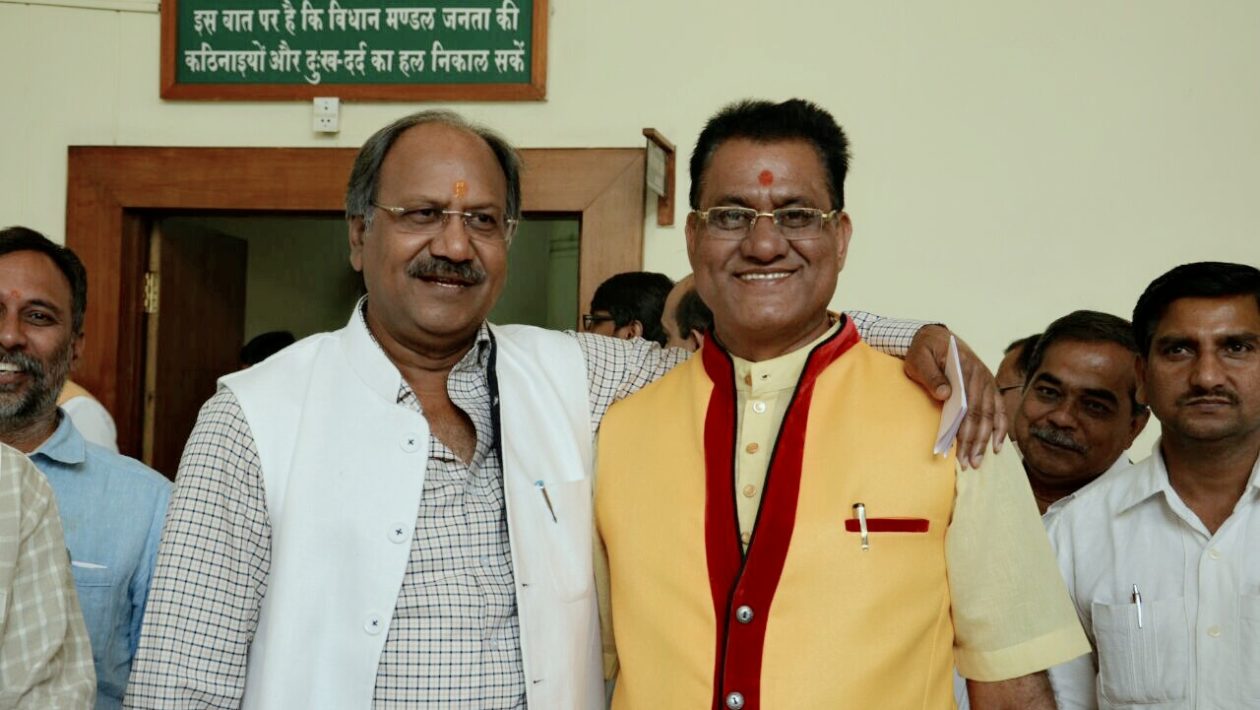 बृजमोहन निवास पर कार्यकर्ता वा नजदीकी मना रहे भाजपा की जीत का जश्न