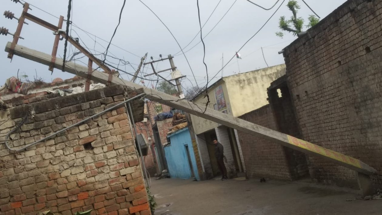 शराब के नशे में धुत ट्रैक्टर चालक ने बिजली के पोल में मारी जबरदस्त टक्कर जिससे एक मकान छतिग्रस्त