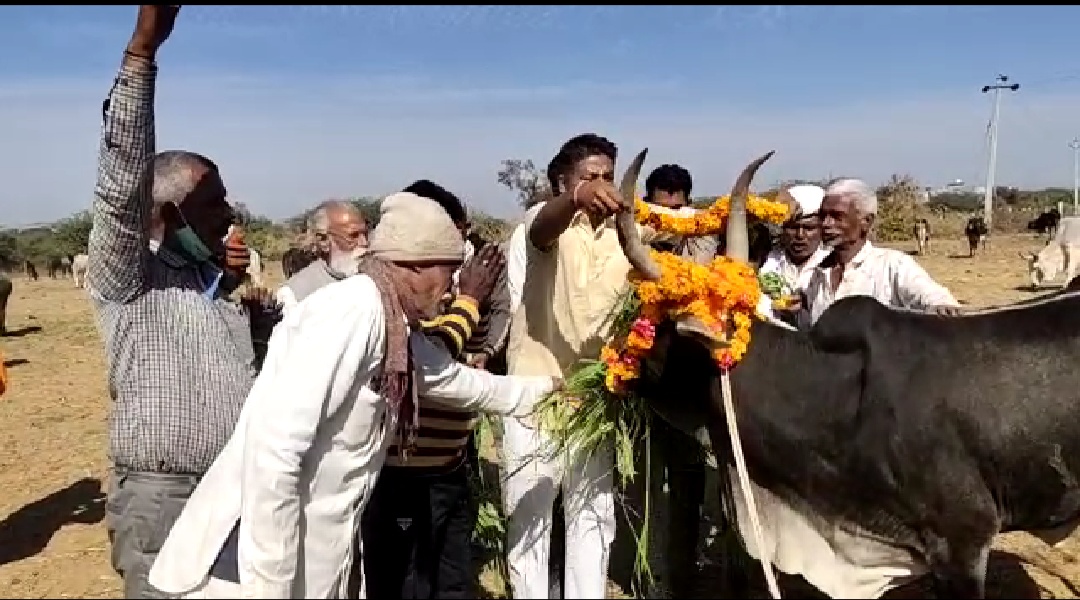 गौमाता का पूजन कर खिलाया हरा चारा तिल लड्डू व गुड़