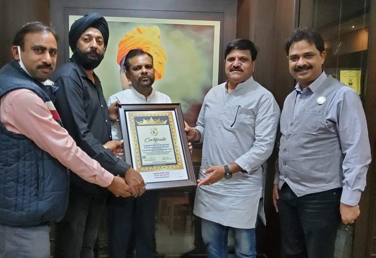 अपना कार्य करते संस्था ने 8 वर्ष पूर्ण कर राष्ट्रीय वा अंतरराष्ट्रीय वर्ल्ड रिकॉर्ड बनाया है। जिसे आज सभापति महोदय श्री प्रमोद दुबे के कर कमलों द्वारा प्राप्त किया ।।