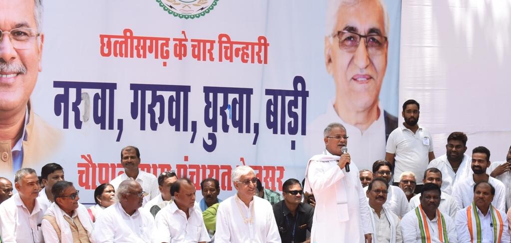 मुख्यमंत्री श्री बघेल ने कहा कि एक समय था जब हमारी ग्रामीण अर्थव्यवस्था बहुत समृद्ध हुआ करती थी, सभी लोग गाय पालना अपना सौभाग्य समझते थे। आज कल गायों को चारे की कमी के कारण खड़ी फसलों के पास जाकर अपना पेट भरना पड़ता है जिससे फसलें बर्बाद होती हैं। इन्हीं स्थितियों को दूर करने के लिये सभी गांवों में गौठान निर्माण करने की आवश्यकता है। गौठान का निर्माण ग्रामीणजनों के आपसी सहमति से किया जायेगा, गौठान के लिए चिन्हित भूमि विवादित न हो, इसका खास ख्याल रखा जाएगा। उन्होंने कहा कि गौठान में आने वाली सभी मवेशियों के स्वास्थ्य का विशेष ध्यान रखा जाए। नियमित रूप से पशु चिकित्सक पशुओं के स्वास्थ्य की देख-रेख करेंगें। पशुओं के नस्ल सुधार पर विशेष ध्यान रखा जाए। गौमूत्र का उपयोग आज अनेक दवाईयों के उत्पादन में किया जाता है। गोबर गैस से हमें सस्ते दर पर ईंधन की प्राप्ति होगी। हमारे घर का खाना बनाने का खर्चा भी कम होगा। उन्होंने बड़ी संख्या में पधारे ग्रामीणजनों से नरवा, गरूवा, घुरवा एवं बाड़ी योजना पर सुझाव आमंत्रित किए। ज्यादातर ग्रामीणों ने इस योजना पर अपनी सहमति जाहिर की।
