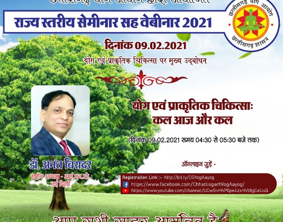 योग आयोग द्वारा आयोजित तीन दिवसीय सेमिनार में इंटरनेशनल नेचुरोपैथी आर्गेनाइजेशन के राष्ट्रीय अध्यक्ष ने वर्चुअल के माध्यम से किया सम्बोधित,