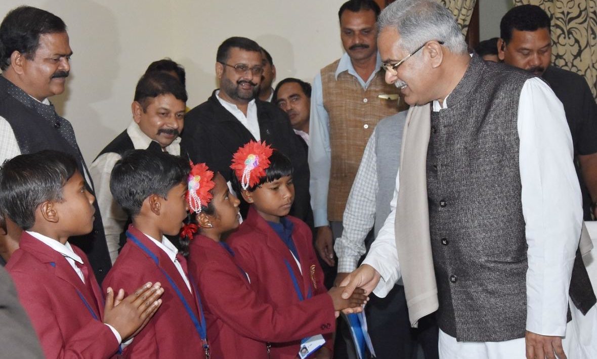 रायपुर, मुख्यमंत्री भूपेश बघेल ने आज यहां राज्य अतिथि गृह पहुना में राज्य वीरता पुरस्कार के लिए चयनित बच्चों से मुलाकात की। उन्होंने बच्चों से आत्मीयता से बात-चीत की और उनका मुंह मीठा कर स्वागत किया। श्री बघेल ने बच्चों के साहस और सूझबूझ की सराहना की और उनके उज्जवल भविष्य के लिए शुभकानाएं दी। इन बच्चों को कल राजधानी रायपुर में आयोजित गणतंत्र दिवस मुख्य समारोह में पुरस्कार देकर सम्मानित किया जाएगा।