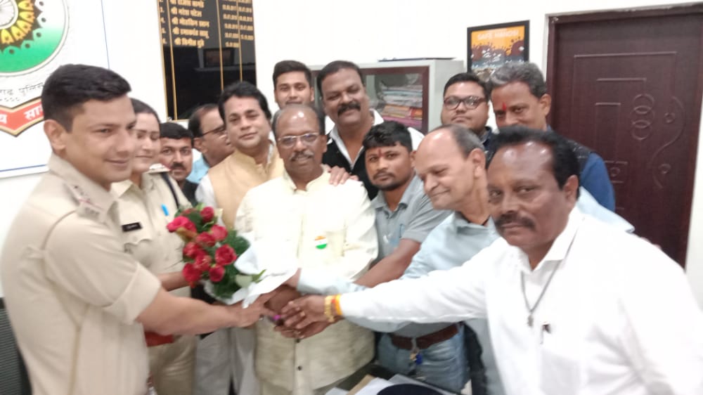 तेलीबांधा थाना प्रभारी व उपनिरीक्षक का व्यापारी संघ ने किया सम्मान
