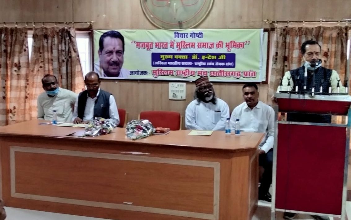 मुस्लिम राष्ट्रीय मंच छत्तीसगढ़ द्वारा विचार गोष्ठी का आयोजन,मजबूत भारत मे मुस्लिम समाज की भूमिका:-डॉ इंद्रेश,अखिल भारतीय सदस्य राष्ट्रीय स्वयंसेवक संघ,