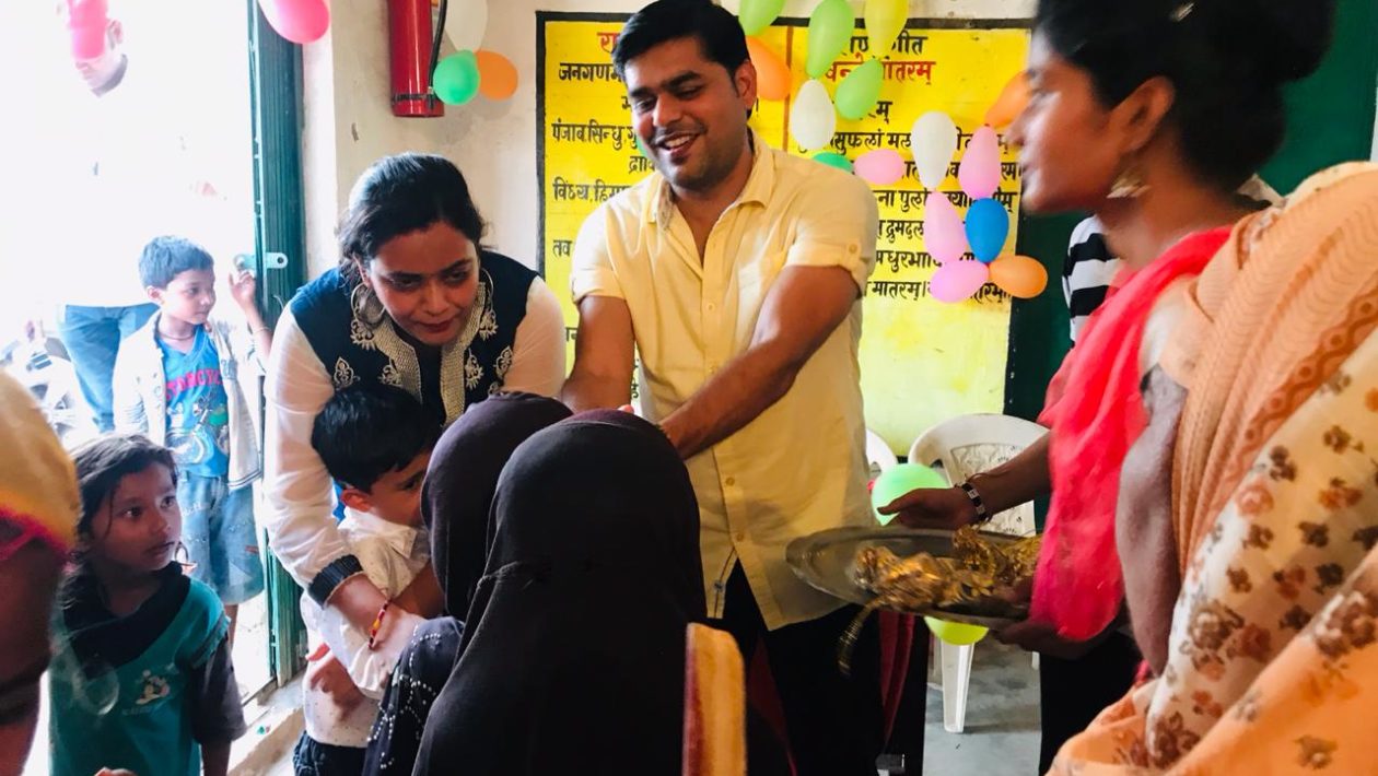 मासूम हिना के बुलावे पर ईदी बांटने पहुंचे अभिनेता अखिलेश पांडे