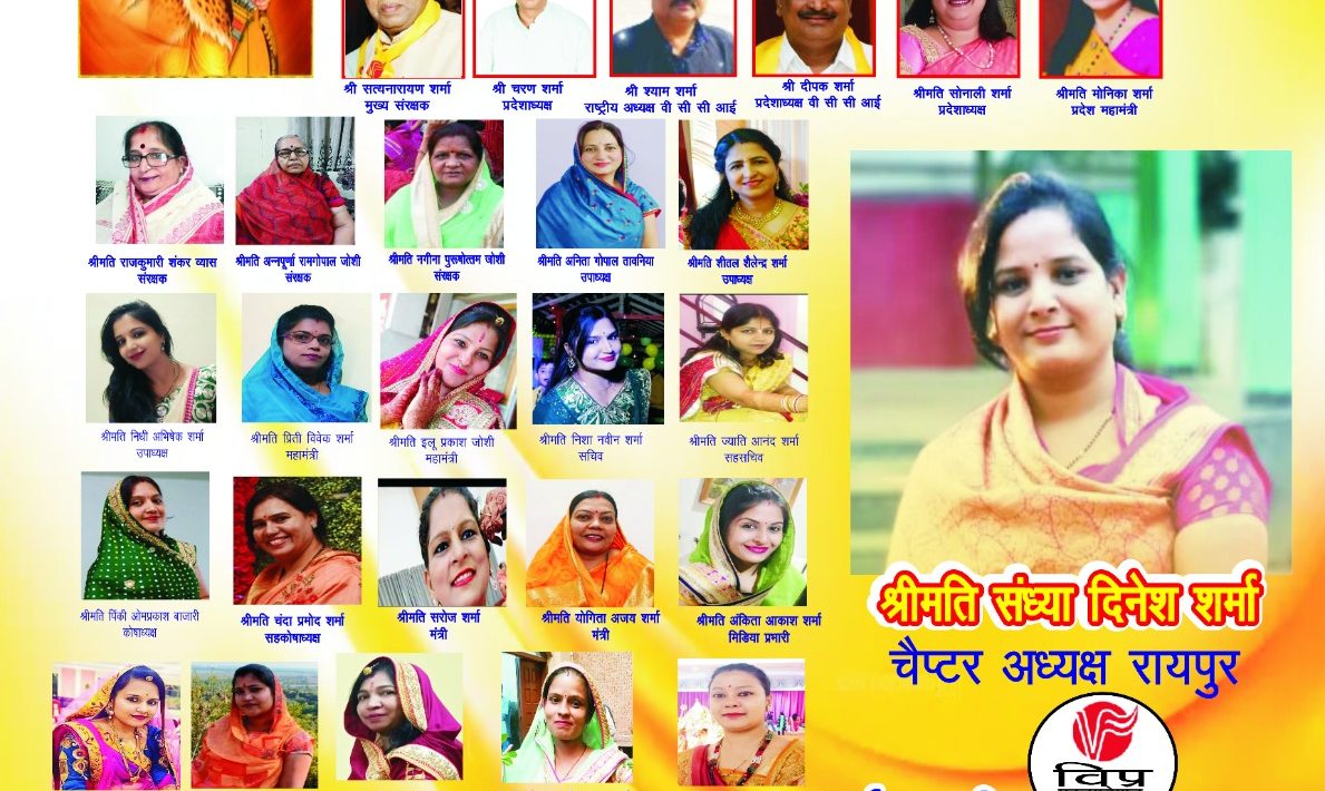 आप को बतादें संध्या दिनेश शर्मा रायपुर जिले में सामाजिक कार्यों के क्षेत्र में आपका सराहनीय योगदान है। विशेष तौर पर महिलाओं के विकास के लिए आप बहुत जागरूक हैं। विप्र फाउंडेशन के संरक्षक वरिष्ठ विधायक सत्य नारायण शर्मा ने नवनियुक्त अध्यक्ष को बधाई देते हुए कहा