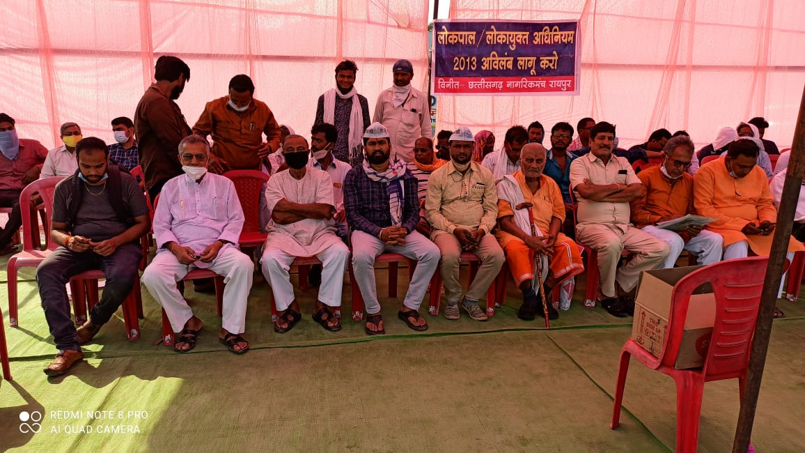 छत्तीसगढ़ नागरिक मंच के द्वारा लोकायुक्त की नियुक्ति की मांग को लेकर एक दिवसीय धरना रायपुर के बूढ़ातालाब स्थित धरना स्थल पे दिया गया जिसमे बड़ी संख्या में नागरिक मंच के पदाधिकारियों व आम जनता शामिल हुए।