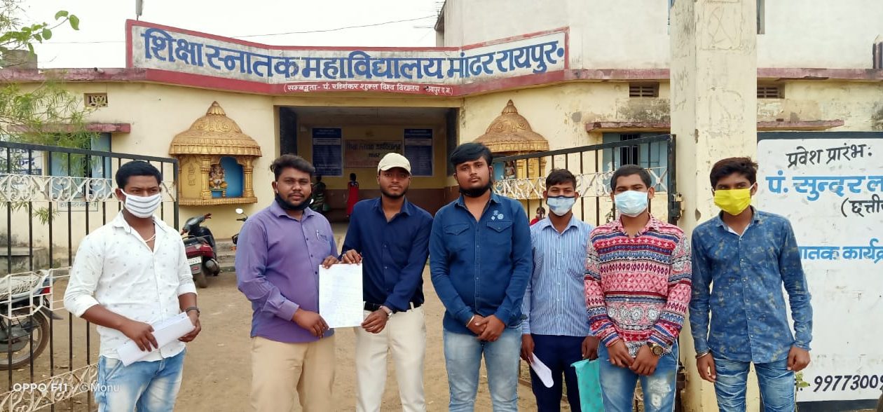 *महाविद्यालय में किया जा रहा अवैध वसूली .विरोध करने पहुंचे एन एस यू आई कार्यकर्ता – आज महाविद्यालय मांढर में छात्र छात्राओं द्वारा शिकायत मिली कि अमहाविद्यालयिन छात्र छात्राओं से बैठक व्यवस्था के नाम पर महाविद्यालय के द्वारा बिना किसी रशीद के 500/ रुपये लिया जा रहा है जिसकी जानकारी मिलते ही एन. एस. यु. आई. जिलाअध्यक्ष श्री अमित शर्मा जी व युवा कांग्रेस जिला महासचिव श्री अमित जांगड़े के आदेश एवं रायपुर जिला NSUI संयोजक श्री सुर्यप्रताप बंजारे के निर्देश पर आज मांढर महाविद्यालय में धरसींवा विधानसभा NSUI के पदाधिकारी धरसींवा विधानसभा सचिव देवेन्द्र खेलवार, धरसींवा विधानसभा मीडिया प्रभारी विनोद कोशले, धरसींवा ब्लॉक चद्रशेखर भारती, छात्र नेता आयुष वर्मा ,देवराज रात्रे,छात्र नेता ललित गेडरे, सोमकान्त साहू, इत्यादि कार्यकर्ताओ ने महाविद्यालय को ज्ञापन सौंपते हुवे समझाइश दिया है कि अगर इस अवैध शुल्क पर रोक नहीं लगाई जाती तो छात्र- छात्राओं द्वारा उग्र आंदोलन किया जाएगा।