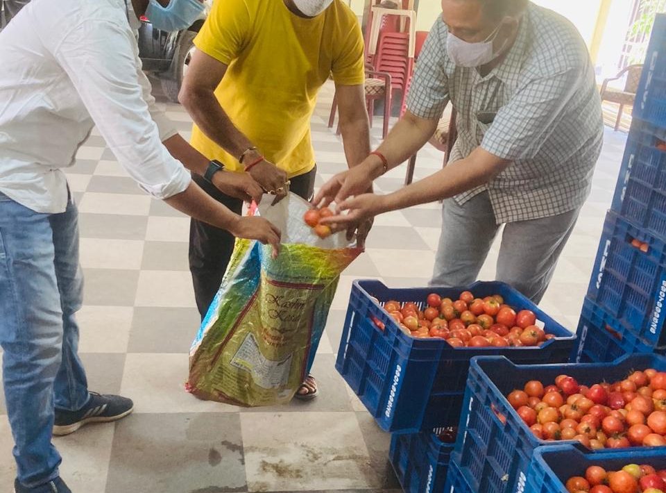 टमाटर,कच्चा केला,नारियल किया गया वितरण-गिरीश दुबे