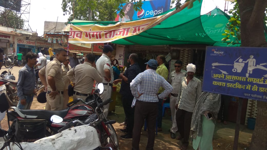 नगर निगम जोन क्रमांक 08 अंतर्गत महोबा बाजार से लेकर टाटीबंध तक जोन आयुक्त श्री प्रवीण सिंह गहलोत के आदेशानुसार आज दिनांक -07.06.2019 को अवैध ठेला गुमतियो को अतिक्रमण अभियान चलाकर हटाया गया और आम जनता को होने वाले रास्ते में बाधा वाले दुकानों की सामान जब्ती की गई अभियान के दौरान सहायक अभियंता श्री डी.के.पैकरा सर, उप-अभियंता श्री शैलेन्द्र पटेल सर व रोमाली सेंडे मैडम और मजहर खान, हेमंत कुमार एवं पुलिस बल की मौजूदगी में कार्यवाही की गयी।
