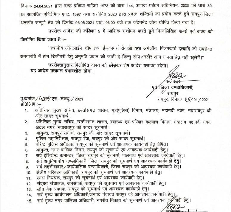 मिटिंग में मुख्यमंत्री भूपेश बघेल ने चेम्बर द्वारा किए गए अनुरोध को संज्ञान में लिया और अमेजान, फिलिपकार्ट के द्वारा गैर आवश्यक वस्तुओ की होम डिलीवरी को तत्काल प्रभाव से निरस्त कर दिया।