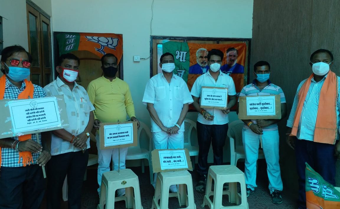 रायपुर,21 मई 2021। भारतीय जनता पार्टी व्यापार प्रकोष्ठ के प्रदेश संयोजक लाभचंद बाफना प्रदेश नेतृत्व के आह्वान पर पूर्व मुख्यमंत्री डॉ.रमन सिंह एवं अन्य नेताओं के विरुद्ध झूठा प्रकरण दर्ज करवाये जाने पर विरोध के रूप में आज अपने निवास पर धरने पर बैठे,प्रकोष्ठ के प्रदेश सह प्रचार-प्रसार मंत्री राजकुमार राठी के अनुसार श्री बाफना ने कहा कि कांग्रेस द्वारा कोरोना के संक्रमण काल में अपने कार्यकर्ताओं के माध्यम से ऑक्सीजन एवं दवा की आपूर्ति को रोककर देश की जनता के जीवन के साथ खिलवाड़ करने का घिनौना कृत्य किया गया और यह बात आम जनता में उजागर होने पर देश से माफी मांगने की बजाय उल्टा चोर कोतवाल को डाटे की तर्ज पर भारतीय जनता पार्टी के नेताओ के खिलाफ गैर जमानतीय धाराओं में अपराध दर्ज कर जेल भेजने की धमकी दी जा रही है।