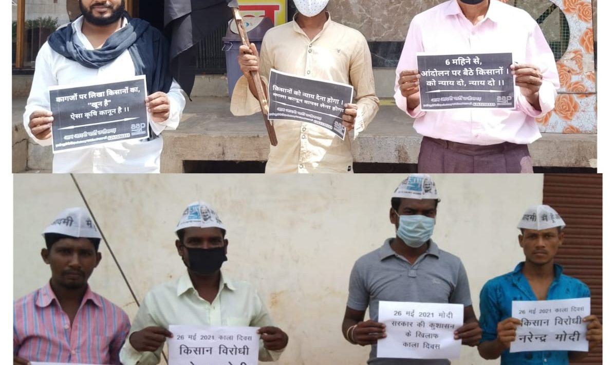 किसानों के समर्थन में आदमी पार्टी ने मनाया काला दिवस