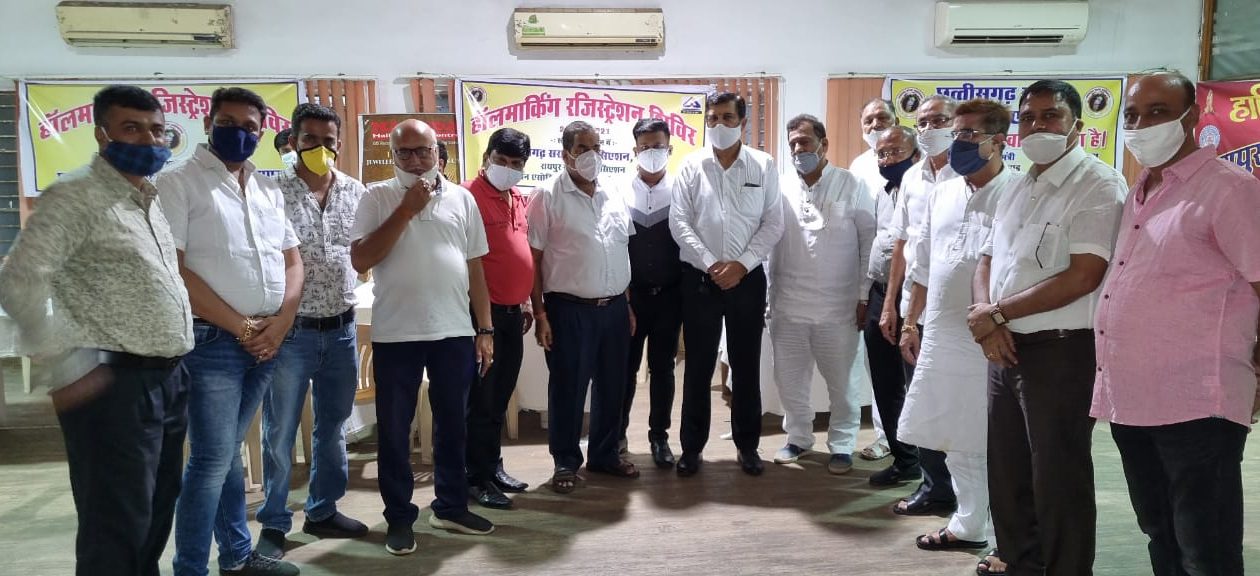 रायपुर,3 जून 2021। छत्तीसगढ़ सराफा एसोसियेशन के नव-नियुक्त पदाधिकारी अध्यक्ष – अनिल बरड़िया, महामंत्री – नरेन्द्र दुग्गड़, कोषाध्यक्ष – सुरेश भंसाली ने संयुक्त विज्ञप्ति के माध्यम से जानकारी दी की आज दिनांक 3 जून 2021 को छत्तीसगढ़ सराफा एसोसिएशन के द्वारा राज्य भर में चलाए जा रहे हाल मार्किंग रजिस्ट्रेशन शिविर की श्रृंखला में रायपुर के दो दिवसीय हॉल मार्किंग रजिस्ट्रेशन शिविर का समापन संध्या 5 बजे होटल मधुबन सदर बाजार में हुआ ।