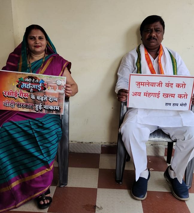 छत्तीसगढ़ प्रदेश कांग्रेस कमेटी के प्रदेश सचिव एवं पूर्व जनपद अध्यक्ष राजेंद्र पप्पू बंजारे एवम रायपुर के पूर्व जिला पंचायत सदस्य श्रीमती संतोषी बंजारे ने अपने निज निवास ग्राम तुलसी बाराडेरा में बढ़ती हुई महगाई के खिलाफ धरना दिया। इस अवसर पर श्री बंजारे ने कहा कि महंगे होते ईंधन से जो हालात बन रहे हैं, वे अर्थव्यवस्था को किसी भी हाल में ऊंचाई पर ले जाने वाले नहीं हैं।मोदी सरकार के कार्यकाल में महंगाई सिर चढ़कर बोल रही है। चाहें बात पेट्रोल डीजल की हो या फिर दाल, दूध सरसो तेल जैसी खाद्य सामग्री की, बढ़ते दामों ने आम लोगों की कमर तोड़ रखी है। बीते सात सालों की बात की जाए तो पेट्रोल-डीजल, एलपीजी गैस के दाम लगभग दोगुने हो चुके हैं तो सरसों के तेल का दाम तीन गुना तक बढ़ चुका है।