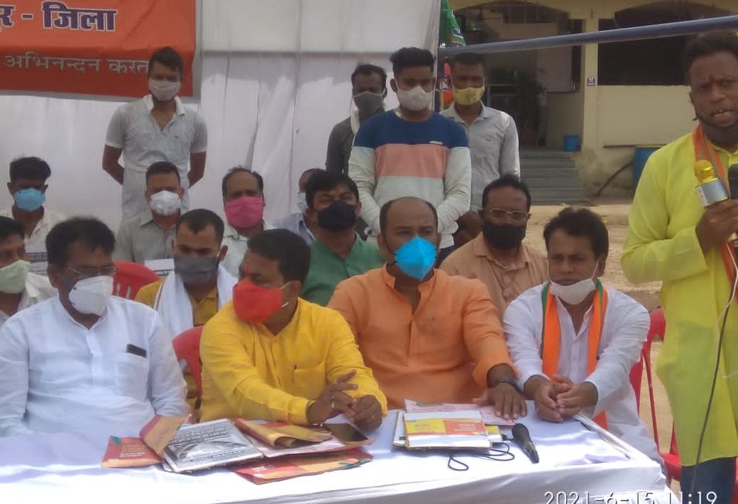 रायपुर,15 जून 2021। भाजपा माना मंडल द्वारा प्रदेश नेतृत्व के आह्वान पर भूपेश सरकार के ढाई साल पूरे होने पर उनके द्वारा किये गए तमाम झूठे वादे, भ्रष्टाचार एवं जनविरोधी नीतियों को लेकर 10 ब्लॉक,माना कैम्प में घर-घर जनसंपर्क किया,उक्त जानकारी देते हुए जिला मीडिया प्रभारी राजकुमार राठी ने बताया कि मतदाताओ ने भाजपा कार्यकर्ताओं से कहा की कांग्रेस की भूपेश सरकार ने हर वर्ग के साथ धोखा किया है,कांग्रेस ने जितने भी वादे किए थे उसमें से कोई भी वादा ढाई साल में पूरा नहीं हुआ। इस वादाखिलाफी पर भाजपा कार्यकर्ताओं ने माना थाना के सामने खड़े होकर सरकार के खिलाफ प्रदर्शन किया।