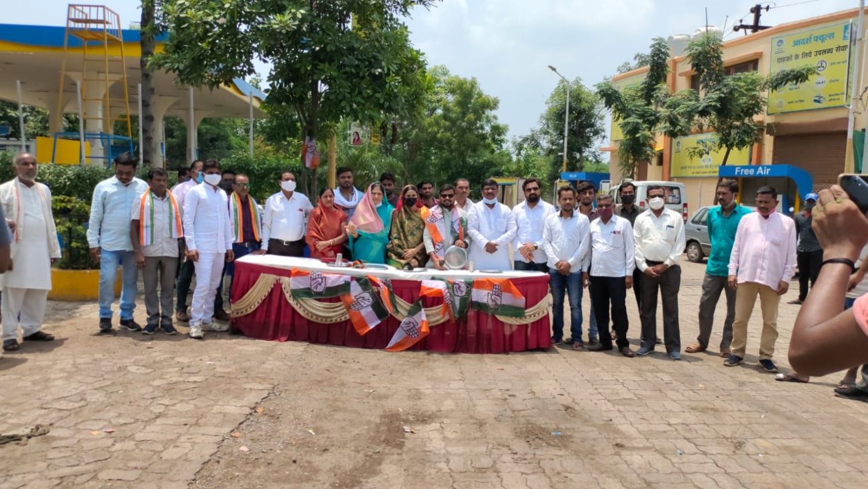 आदर्श फ्यूल्स विधानसभा के पास बढ़ती महंगाई के विरोध में थाली बजाकर आम लोगो से हस्ताक्षर कराकर धरना-प्रदर्शन किया -कांग्रेस प्रदेश सचिव राजेन्द्र बंजारे*