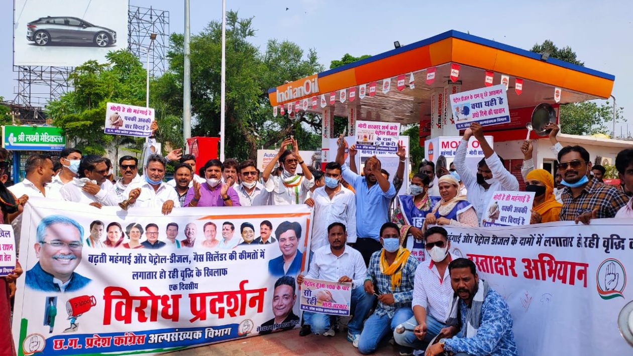 पेट्रोल डीज़ल की क़ीमत ऐतिहासिक स्तर ₹100 पार करने पर छत्तीसगढ़ प्रदेश अल्पसंख्यक विभाग का मोदी सरकार की नीतियों महंगे ईंधन व महंगाई को लेकर विरोध प्रदर्शन