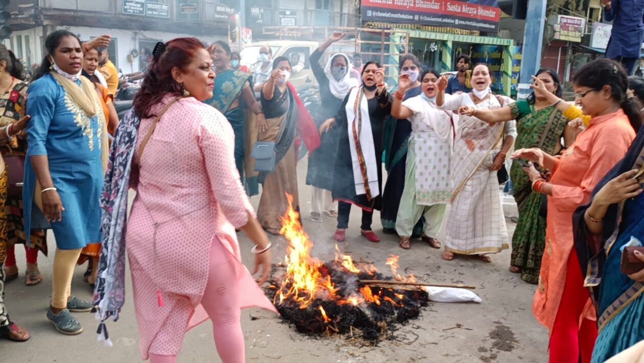 रायपुर,लोकतंत्र की हत्यारी मोदी सरकार के द्वारा राज्यसभा में कांग्रेस पार्टी की महिला सांसदों के साथ अभद्र व्यवहार कर मारपीट की गई हमारे प्रदेश के लोकप्रिय राज्यसभा महिला सांसदगण श्रीमती फूलों देवी नेताम एवं छाया वर्मा को इस वारदात मे चोटे आई। इस घटना की कड़ी निंदा करते हुए जिला महिला कांग्रेस कमेटी की जिला अध्यक्ष (रायपुर ग्रामीण ) अनिता गुरुपंच ,प्रदेश महासचिव राधा राजपाल,ममता राय गंगा यादव ,सुधा सरोज के नेतृत्व में राजीव गांधी चौक रायपुर में मोदी सरकार के खिलाफ धरना प्रदर्शन व पुतला दहन किया गया । इस प्रदर्शन में महिला कांग्रेस के विभिन्न पदाधिकारी शामिल हुए,जिनमे पुष्पलता वैष्णव,तारिणी वर्मा, बबिता सेन गुप्ता,खुशबू केडिया, हजरून खान बानो,अन्नू टंडन, शकुंतला बांधे,धनमत घृतलहरे, सायरा खान, कल्पना सागर, बप्पी ईरानी, निक्की खान, कु शशि शर्मा, शम्मी बेगम, निखत कुरेशी, हेमलता सेन , भुनेश्वरी डहरिया , बुधियारी मरकाम, सुषमा सामंत राय, विद्या सेन , सुषमा ध्रुव,संगीता तिवारी, मल्लिका प्रजापति,देविका लोहा, कु प्रमिला सोनवानी,प्रगति बाजपाई, कुसुम द्विवेदी,अनिता श्रीवास्तव,शकुन शुक्ला उपस्थित थे।