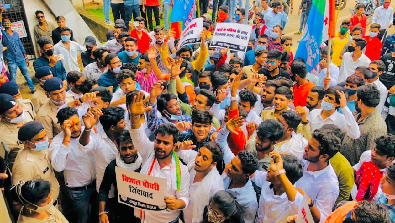 प्रदर्शन में मुख्य रूप से जिला महासचिव प्रशांत गोस्वामी ,महताब हुसैन , राजकुमार यादव , कुणाल दुबे , भूपेश वर्मा , विनय वर्मा , शुभांशु , इमरान,नीलकंठ , वैभव , अजित ,गावेश , सेवा , सम्मित , आलोक , शैलेंद्र , अर्जुन , विराट , आकाश ,सूर्यप्रताप सहित सैकड़ों की संख्या में NSUI नेता उपस्थित रहे।